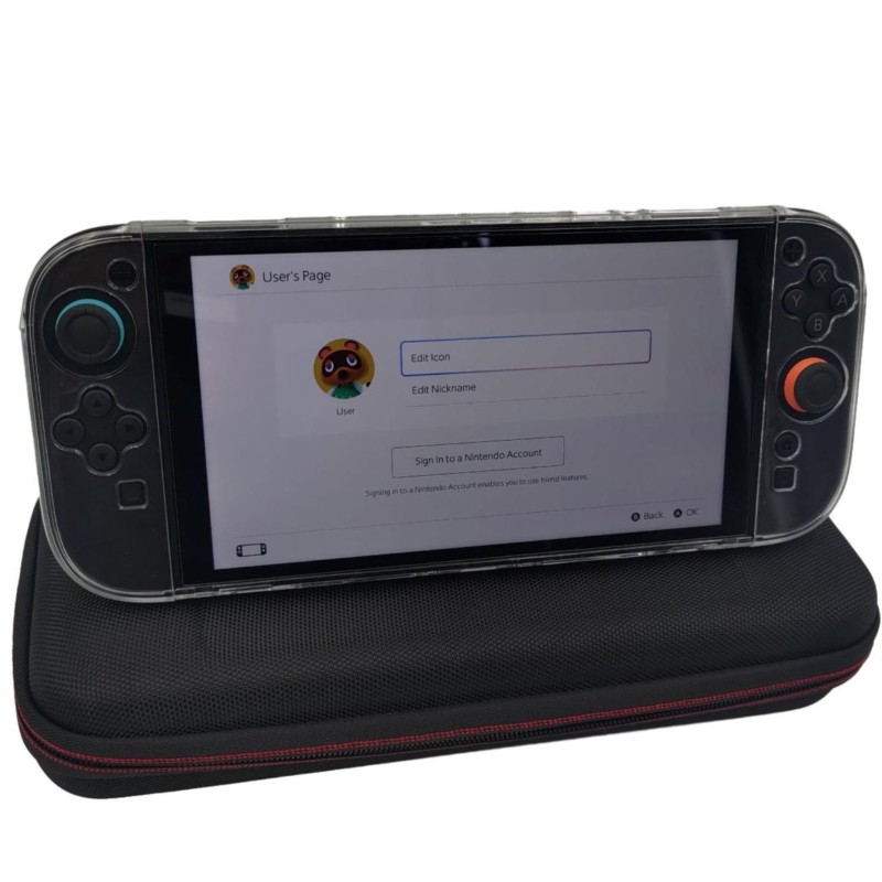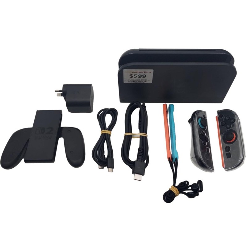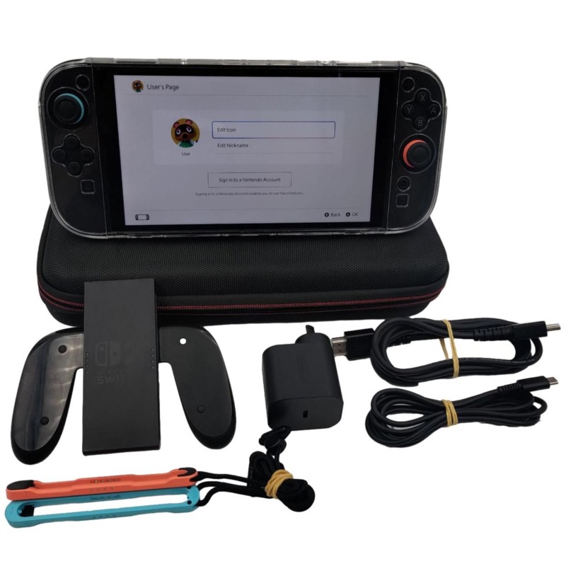 This Nintendo 2 handheld console is in excellent condition, with very little sign of wear. It comes complete with all the essential accessories, including a controller, dock, cables, storage case, and a protective case, ensuring a seamless and secure gaming experience.