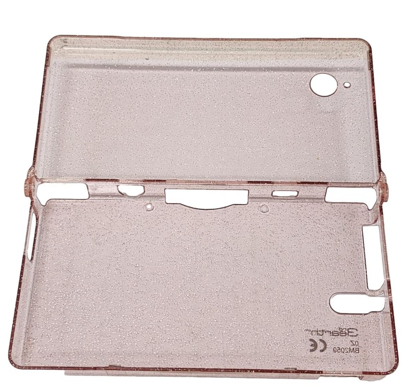 This Nintendo DS Lite in Glitter Pink is a compact and stylish handheld gaming console. With its dual screens and intuitive touch controls, it offers an immersive gaming experience. Despite some minor signs of wear, this console remains in good condition and ready for endless hours of portable entertainment.