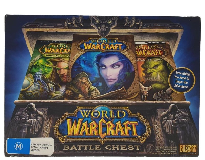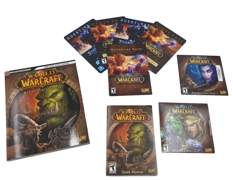 Experience the epic fantasy world of Azeroth with this WORLD OF WARCRAFT Battle Chest. This classic PC game from Blizzard Entertainment invites you to explore the rich and immersive universe, complete with captivating quests, diverse character classes, and deep RPG mechanics. Though one disc is missing, the core game remains fully functional, with only light cosmetic wear evident. Dive into the realms of Warcraft and embark on an unforgettable adventure.