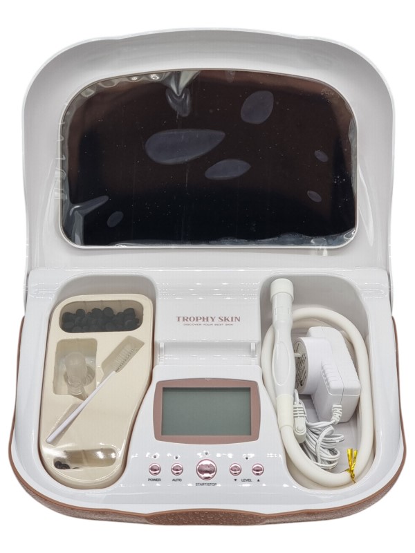 The Trophy Skin Microdermabrasion System is a professional-grade, at-home device designed to exfoliate and rejuvenate skin. It features a diamond tip for effective dead skin removal, adjustable suction levels, and multiple treatment modes, including microdermabrasion and pore extraction, promoting smoother, brighter skin with regular use.
