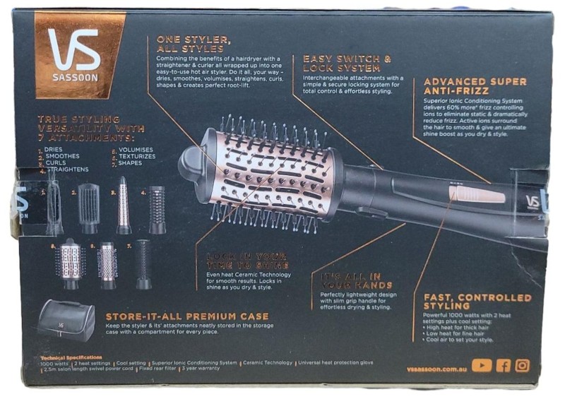 This VS SASSOON VSHA2136A Air Style Brilliance hair styler is a versatile and high-performing tool for all your styling needs.