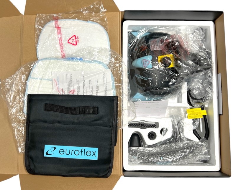 Accessories: Microgiber Pads, Carpet Glide, Filling Cup, Funnel, 7 X Attachments, Parking Pad, Accessory Bag, Box