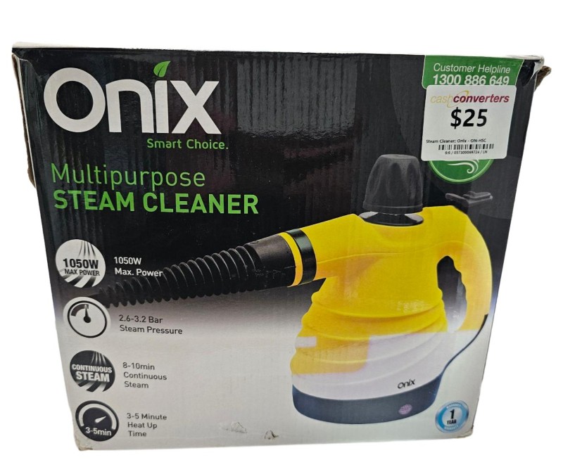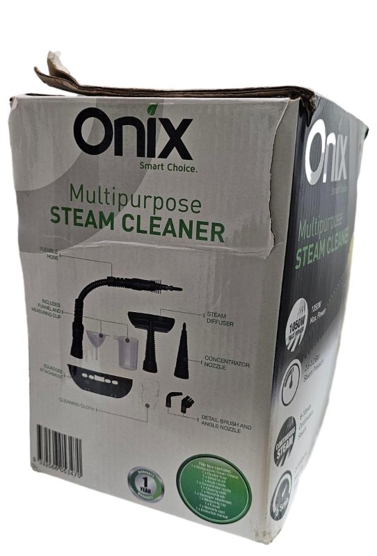 This Onix ON-HSC steam cleaner is a versatile and efficient cleaning solution for your home. With its powerful steam technology, it can tackle a variety of surfaces, from floors to countertops, leaving them sparkling clean. The compact design makes it easy to maneuver and store, while the included accessories allow you to tackle even the trickiest areas. This unit is in good condition, with only minor signs of wear, though the box has some damage.