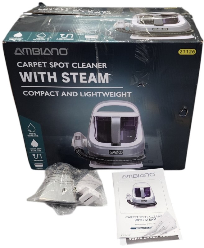 This Ambiano Carpet Spot Cleaner With Steam is a versatile cleaning tool perfect for tackling stubborn stains and refreshing carpets. Its powerful steam function effectively lifts and removes dirt, while the compact design makes it easy to manoeuvre around tight spaces. Ideal for quick spot cleaning or maintaining your home's carpets and rugs.