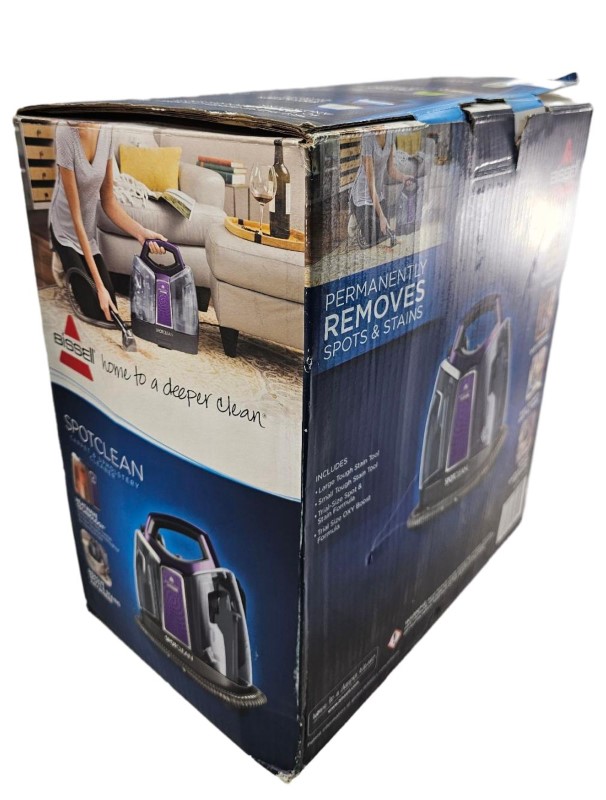 This BISSEL SPOT CLEANER is a reliable and efficient carpet cleaner that can help you tackle tough stains and spills. Its powerful suction and targeted cleaning action make it a versatile tool for maintaining the cleanliness of your carpets and upholstery. With its compact and portable design, you can easily move it around your home to clean those hard-to-reach areas.