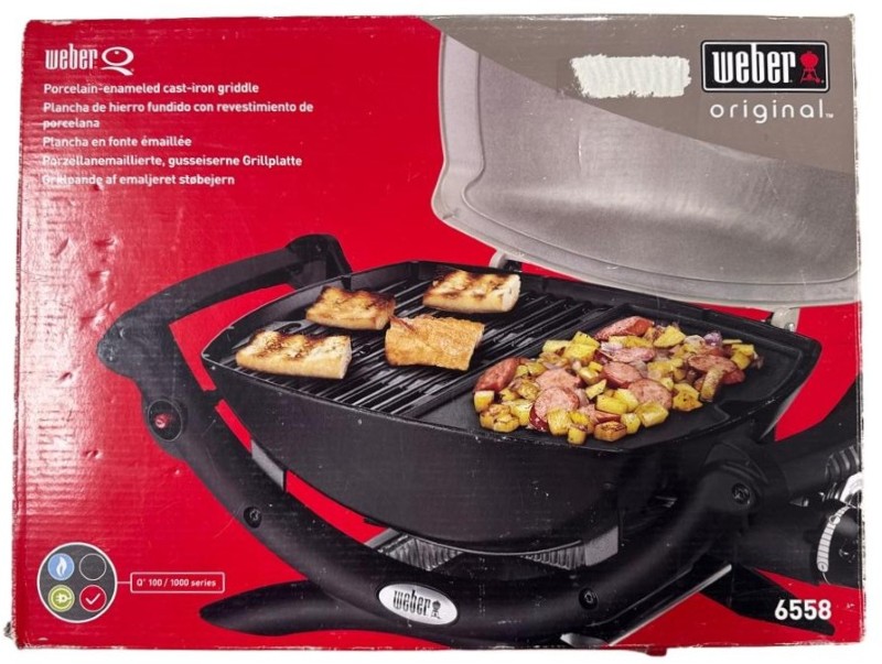 This premium WEBER GRIDDLE 6558 is a versatile BBQ accessory that allows you to cook a variety of foods on your grill. With its durable construction and efficient heating, you can sear, sauté, and griddle your favourite dishes with ease. Its large cooking surface provides ample space for multiple servings, making it perfect for entertaining or family meals. This BBQ plate is in good condition with little sign of wear, ensuring reliable performance for your outdoor cooking needs.