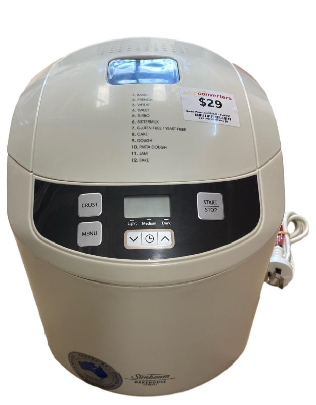 This Sunbeam BM2500 bread maker is a versatile kitchen appliance that allows you to create freshly baked bread with ease. With a range of pre-programmed settings, you can make a variety of bread types, from classic white loaves to wholemeal and gluten-free options. The large 1.5kg bread capacity means you can bake enough for the whole family. The intuitive control panel and LCD display make operation simple, while the non-stick bread pan ensures effortless release and cleaning.