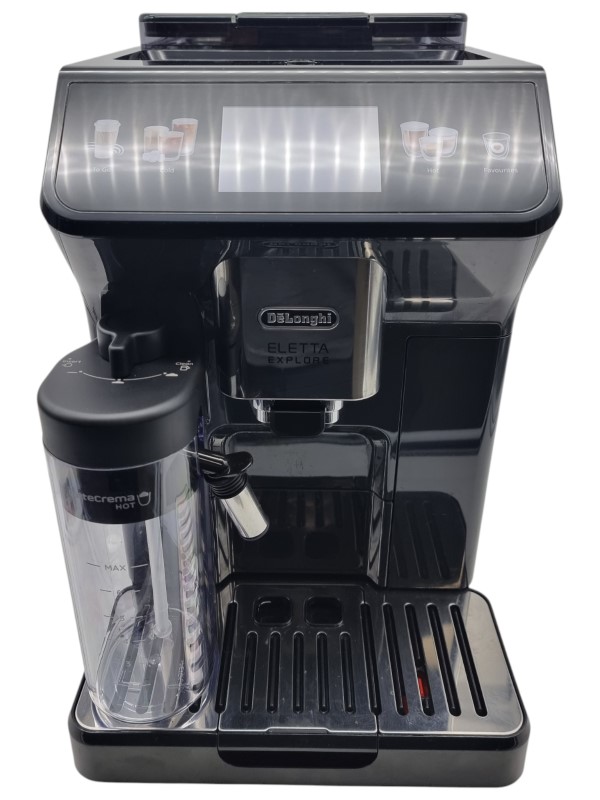 This DeLonghi Eletta Explore Perfetto Automatic Coffee Machine is a versatile and reliable choice for your home or office. Featuring a bean-to-cup design, it grinds fresh beans for each cup, ensuring a rich and flavorful coffee experience. With a sleek and modern appearance, this machine will complement any kitchen decor.