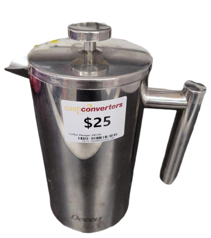 This DECEN coffee plunger has been well used but remains in working condition. It is a practical and efficient way to brew a delightful cup of coffee. With its simple design, the plunger allows you to easily control the steeping time and extract the full flavour of your preferred coffee grounds. Whether you're enjoying a quiet moment at home or entertaining guests, this coffee plunger will provide a smooth and satisfying coffee experience.