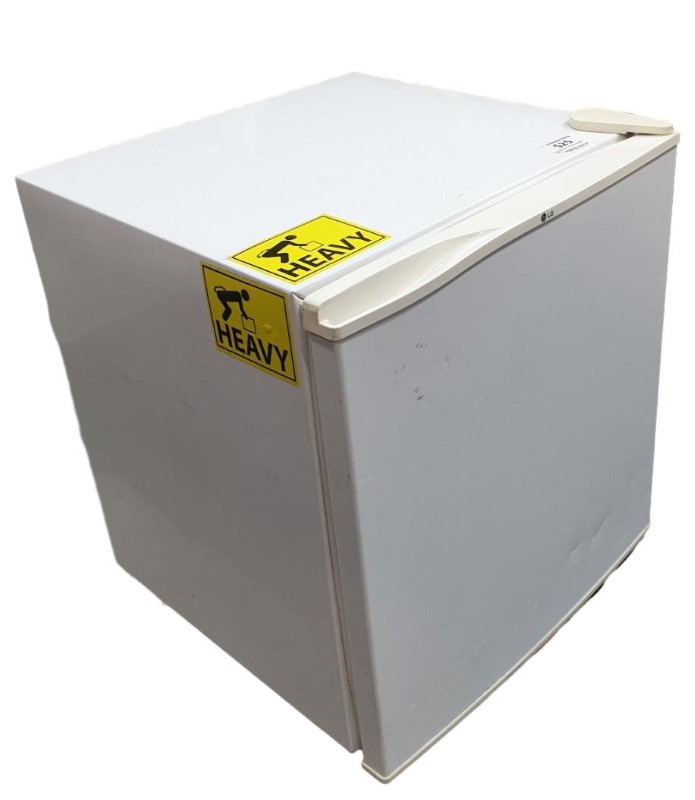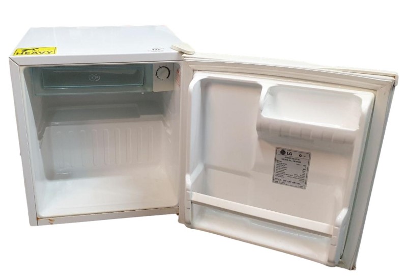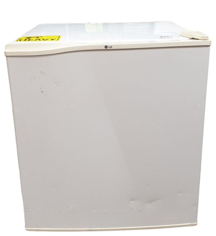 This compact LG GR-051SS bar fridge is a practical addition to any kitchen or home bar. While it's missing a shelf, it remains fully functional and ready to keep your beverages and small items chilled. Despite showing signs of heavy wear, this resilient appliance continues to perform admirably.