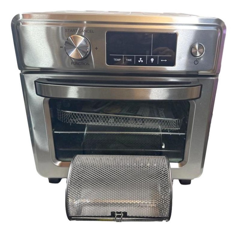 This Baccarat The Ultimate Fry XL - Airfryer & Oven is a versatile kitchen appliance that can air fry, bake, and roast a variety of foods with ease. Its spacious 5.5L capacity allows you to cook larger portions, while the intuitive digital controls make it simple to achieve perfect results every time. The included rotisserie cage adds even more cooking versatility, enabling you to create delicious rotisserie-style dishes.