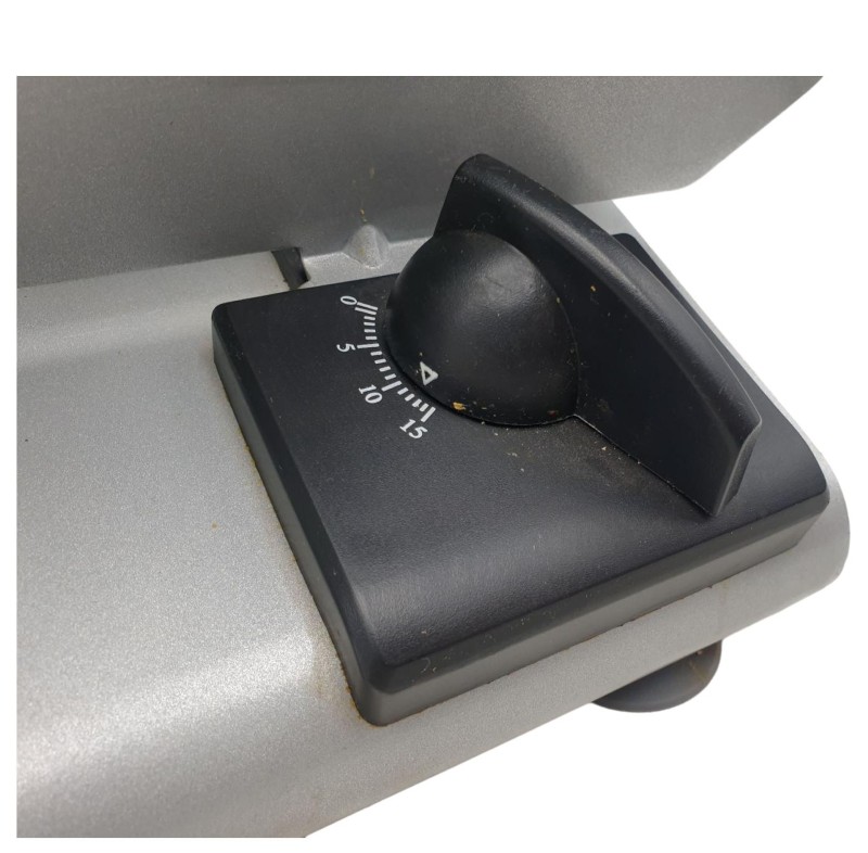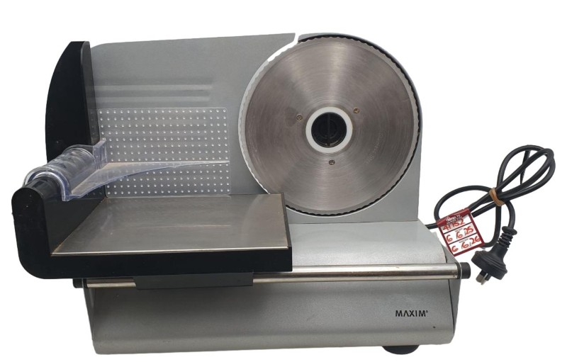This Maxim FS9003A deli slicer is a reliable kitchen appliance that has been well-used. It features sturdy construction and a powerful motor to handle a variety of slicing tasks with ease. The adjustable blade allows you to customise the thickness of your slices, making it versatile for meats, cheeses, and more. This secondhand slicer is a practical addition to any kitchen.