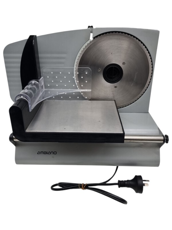 This Ambiano FS190 220W Meat Slicer is a versatile kitchen appliance that can effortlessly slice a variety of meats, cheeses, and more. With its powerful 220-watt motor, you can achieve precise, even slices for all your culinary needs. The included safety pusher ensures safe and efficient operation.