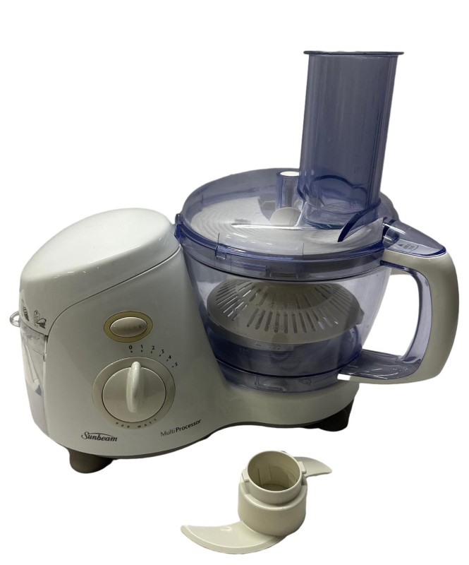 This SUNBEAM MULTI PROCESSOR food processor is a versatile kitchen appliance that can handle a variety of food preparation tasks. With its powerful motor and range of attachments, it can chop, slice, shred, and puree ingredients with ease. Its compact design makes it a practical addition to any kitchen. This secondhand model is in good condition with little sign of wear, ensuring reliable performance.