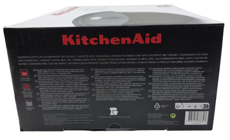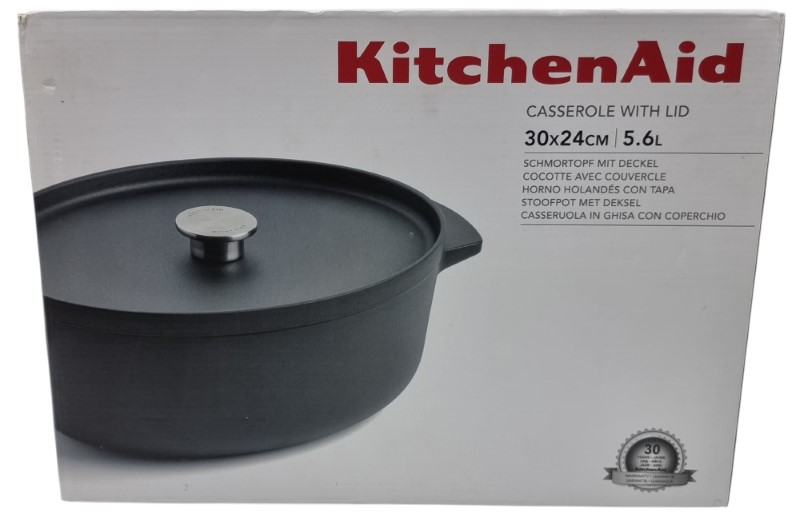 Introducing the KitchenAid Cast Iron collection - including the Covered Casserole 30cm (5.6L). Robust and durable yet has an elegant design and serves up to a family of six. Made of high-quality cast iron, it retains heat extremely well: once it’s heated, it stays hot. Perfect for searing, browning or frying food, but also great for slow cooking and long simmering. The Cast Iron collection performs beautifully on all stovetops, including induction and is oven safe (up to 260°C). Perfect for cooking roasts, larger meats and poultry, whole chicken roasts, braises, large batches, meal prep and bouillabaisse.