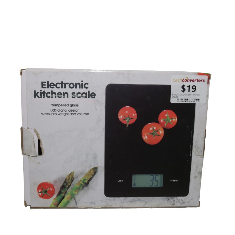 This sleek and practical kitchen scale from TARGET is a versatile addition to any home kitchen. With its easy-to-read display and compact design, it makes measuring ingredients for your favourite recipes a breeze. Whether you're baking, cooking, or preparing meals, this scale ensures precise measurements every time.