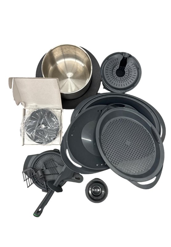 Accessories: Cook Books, Manual, Skimmer Basket, Butterfly Whisk, Splash Guard, Spatula