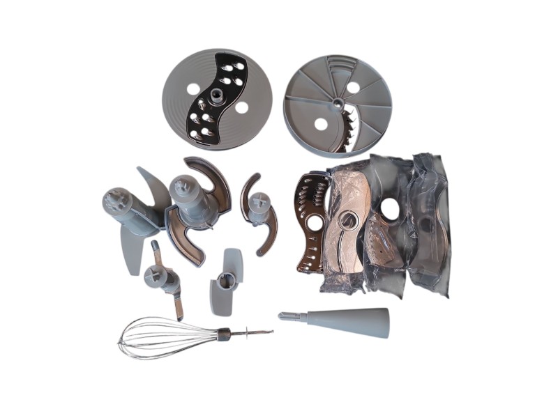 Accessories: Food processor attachments, food processor blades, 2x handmixer attachments.