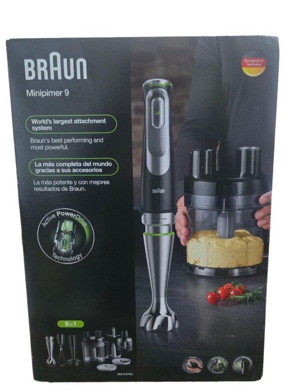 This powerful BRAUN MULTIQUICK 9 blender is a versatile kitchen essential. With its robust 1000W motor, it effortlessly blends, purees, and crushes a variety of ingredients. The stainless steel blades provide exceptional cutting performance, while the 1.5L glass jug allows you to prepare larger batches. Intuitive speed controls and a pulse function give you precise control over the blending process. Compact and sleek, this blender will seamlessly integrate into your kitchen decor.