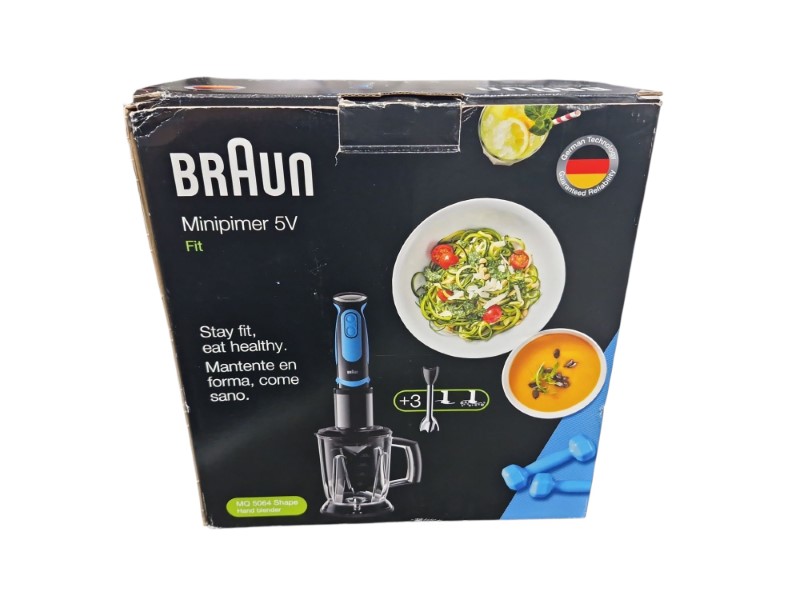 This Braun Minipimer 5V blender is a versatile kitchen appliance that can handle a variety of culinary tasks. With its powerful motor and range of included attachments, it's perfect for blending, chopping, and pureeing ingredients to create delicious homemade meals and drinks. Its compact design makes it easy to store and use in any kitchen.