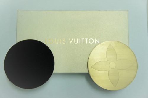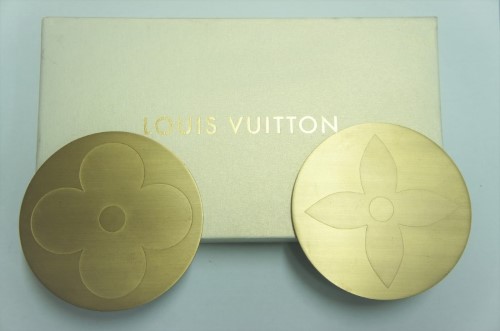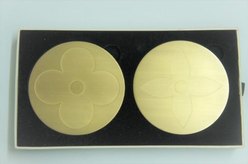 Model Name: Vip Coaster Set Two Pieces Gold Tone Metal With Black Velvet Backlining