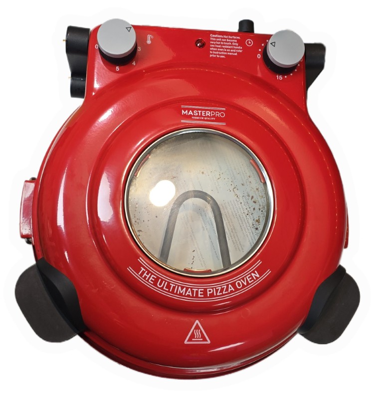 This MASTERPRO THE ULTIMATE PIZZA OVEN WITH WINDOW is a versatile and efficient cooking appliance that can elevate your culinary experiences. Its compact design makes it perfect for small kitchens, while its powerful performance ensures perfectly cooked pizzas, breads, and more. With a window, you can easily monitor the cooking process. Though it has been well-used, this oven remains in working condition and ready to serve your baking needs.