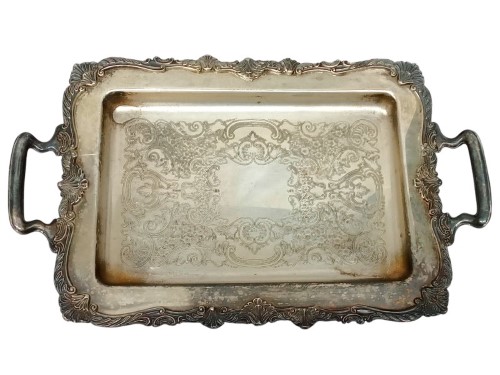 This is a Viners Genuine Silver Plate Tray, measuring 27 x 44.5 cm, and featuring handles. It is a quality silverware piece, ideal for display or serving.