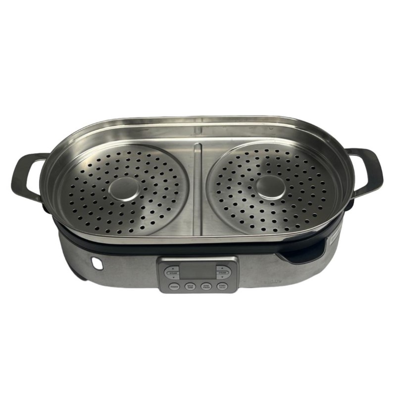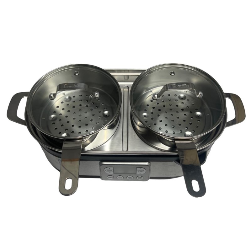 This BREVILLE THE STEAM ZONE BFS800 steam cooker is a versatile and efficient kitchen appliance. With its intuitive controls and steam-powered cooking, you can prepare healthy, flavourful meals with ease. The compact design makes it ideal for small kitchens, while the generous capacity allows you to cook a variety of dishes simultaneously. This well-maintained unit is in good condition, showing minimal signs of wear.