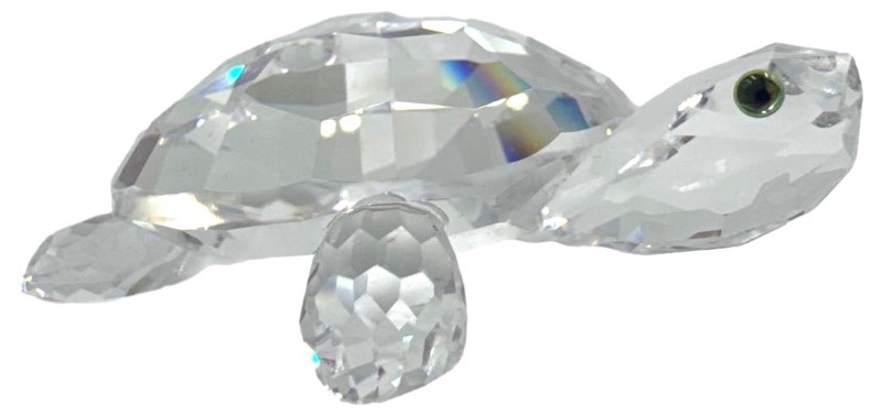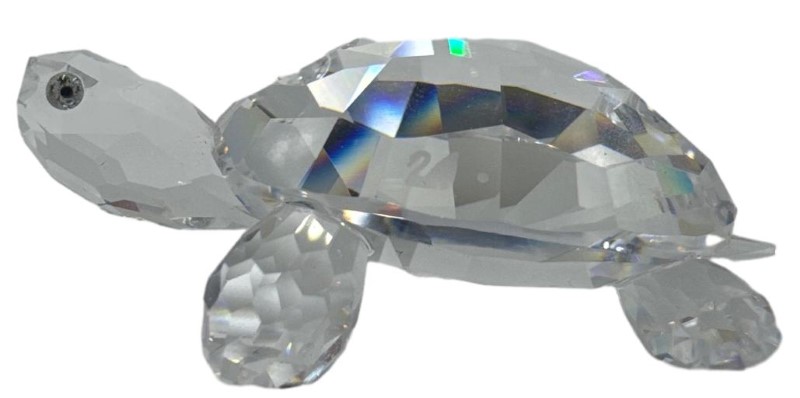 This stunning Swarovski crystal turtle ornament is a delightful addition to any home. Crafted with the brand's renowned attention to detail, this piece features intricate crystal facets that capture and refract light, creating a mesmerising display. Presented in its original box, this ornament is in good condition with minimal signs of wear, making it a lovely choice for those seeking a touch of elegant sophistication.