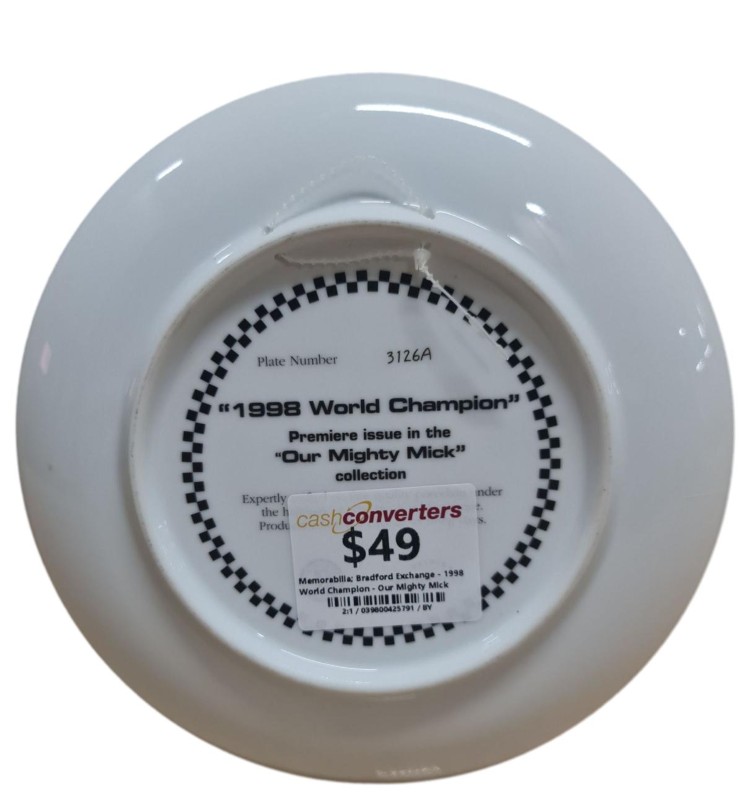 This stunning ornament from The Bradford Exchange celebrates the 1998 World Champion, the legendary Mick. Crafted with meticulous attention to detail, this piece captures the power and skill of this iconic athlete. Displayed prominently, it will be a captivating addition to any sports enthusiast's collection.