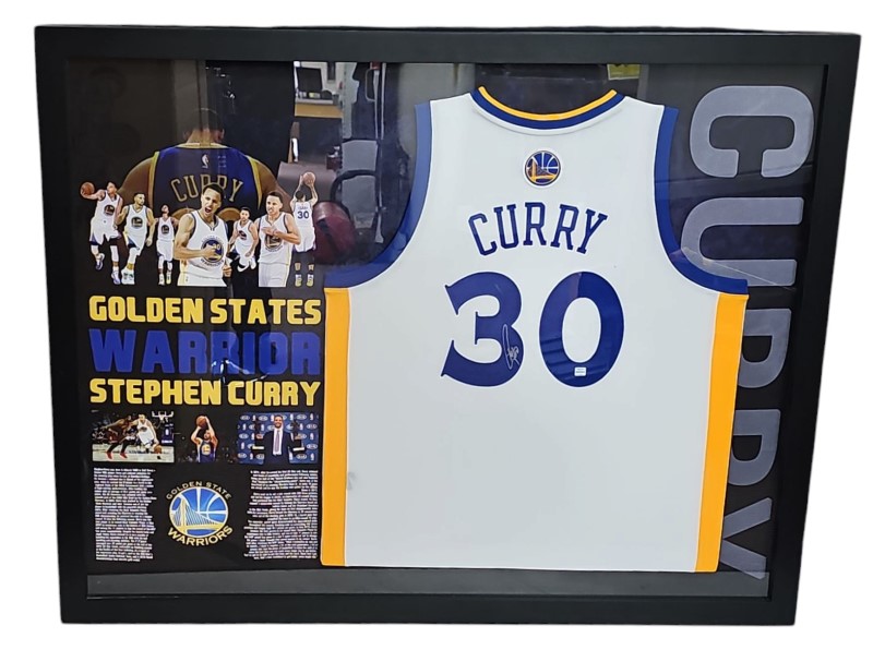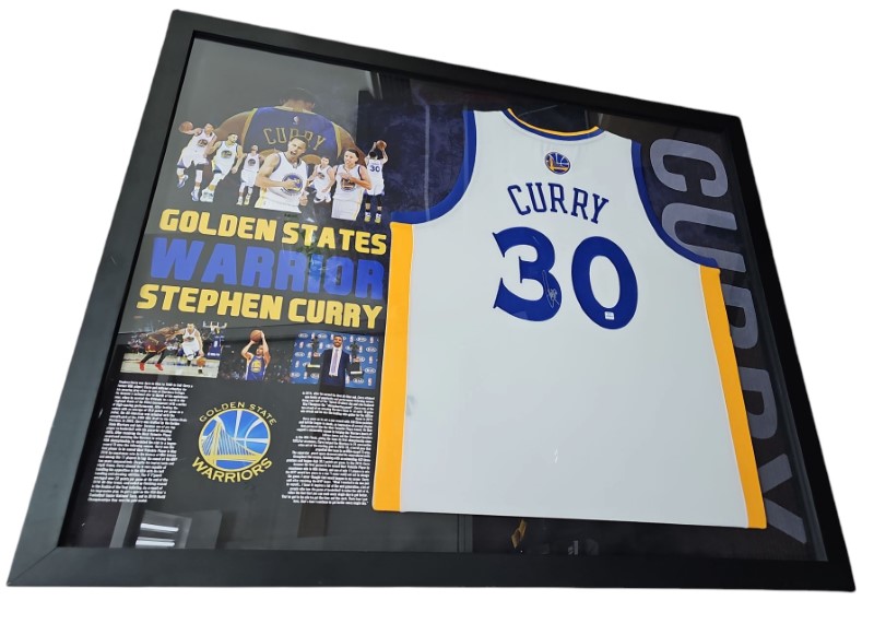 Stephen Curry Golden State Warriors signed Jersey, Frame measures 113cm wide x 90cm high.