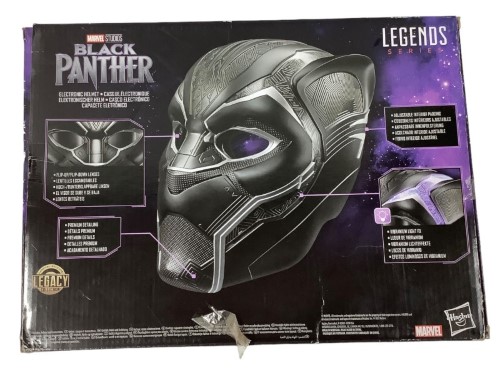 This stunning Marvel Studios Black Panther Mask is a captivating piece of memorabilia that will add a touch of superhero flair to any space. Crafted with attention to detail, this iconic mask captures the bold and powerful essence of the Black Panther character. Whether displayed on a shelf or used as a decorative accent, this piece is sure to impress and delight Marvel fans and collectors alike.