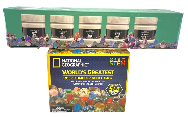 Accessories: National Geographic World's Best Rock Tumbler Refill Kit With 5 Lb. Mix Of Rocks, Grit & More Kit + Brave Finder Jzh-Gr05 Grit Refill Kit