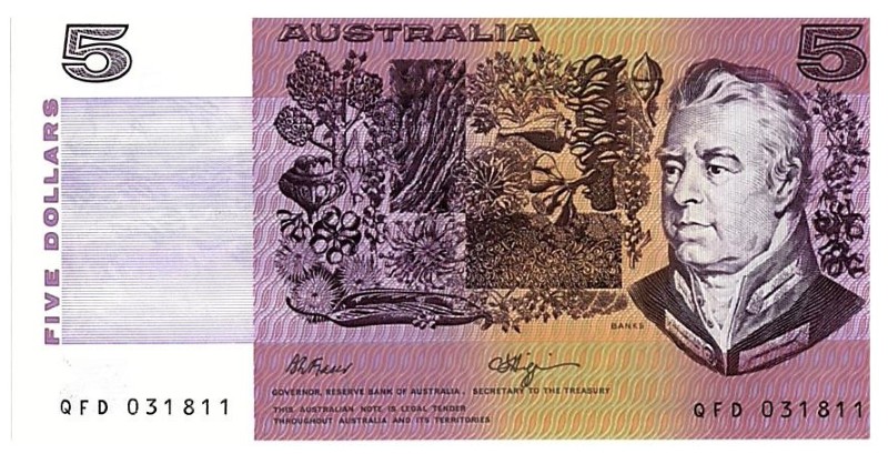 - Authentic Australian $5 banknote