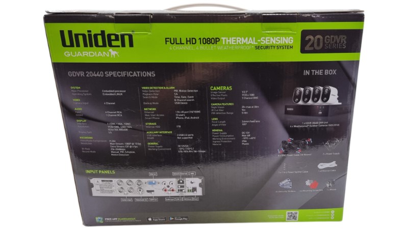 The GDVR 20440 is a robust 4 channel 2MP FULL HD 1080P DVR system with 4 weatherproof^ cameras which can be viewed on your smartphone, tablet or through your television. This integrated system offers exceptional FULL HD resolution and quality enhancing efficiency and monitoring capabilities. The GDVR 20440 can also be viewed at night with night vision up to 20+ metres and a 105 Degree viewing angle, offering versatility that is needed in night environments.