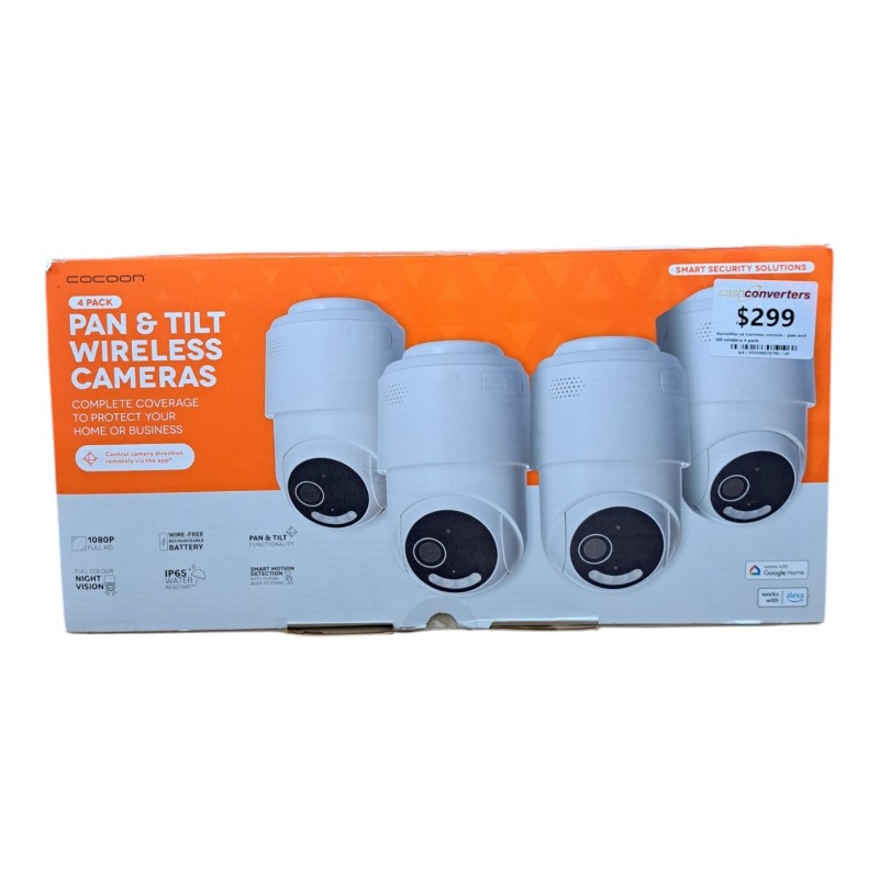 This Cocoon pan and tilt wireless camera set provides a comprehensive home security solution. With four high-quality cameras, you can monitor your property from multiple angles. The cameras feature advanced motion detection and night vision capabilities, ensuring reliable surveillance day and night. Easily control the cameras remotely using the intuitive mobile app. This system offers a simple and effective way to enhance the safety and security of your home.