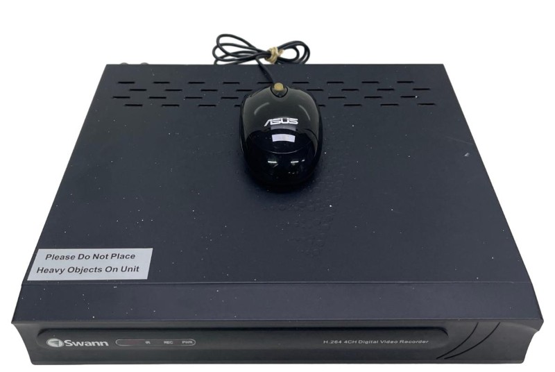 This Swann H.264 4CH Digital Video Recorder is a reliable surveillance solution for your home or business. With 4 channels, it allows you to monitor multiple areas simultaneously, ensuring comprehensive security coverage. The included power adapter and mouse make it easy to set up and use right out of the box. Despite its previous use, the recorder remains in good condition with minimal signs of wear, ensuring continued performance.
