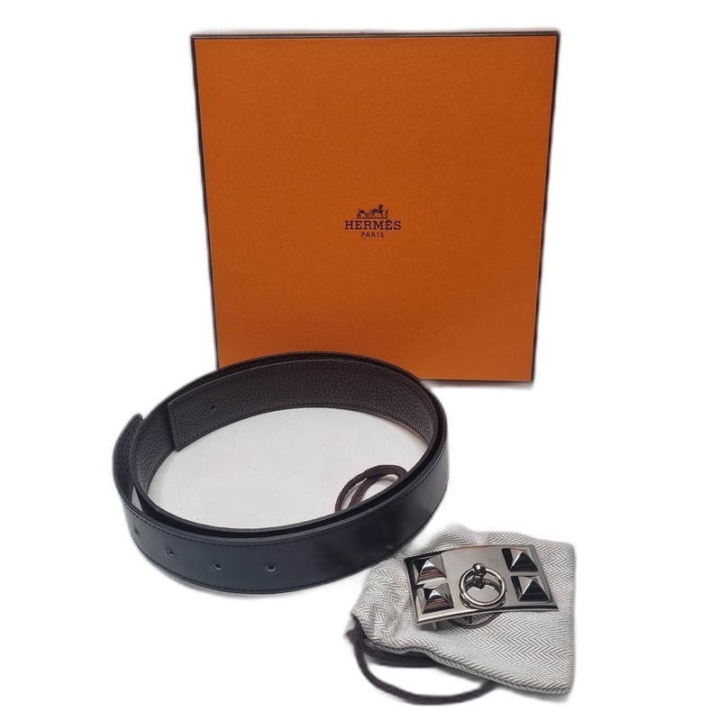 Collier de Chien Buckle: The centerpiece of this belt is the iconic Collier de Chien buckle. This signature design, originally inspired by dog collars, adds a touch of edgy elegance and instantly recognizable Hermès style.