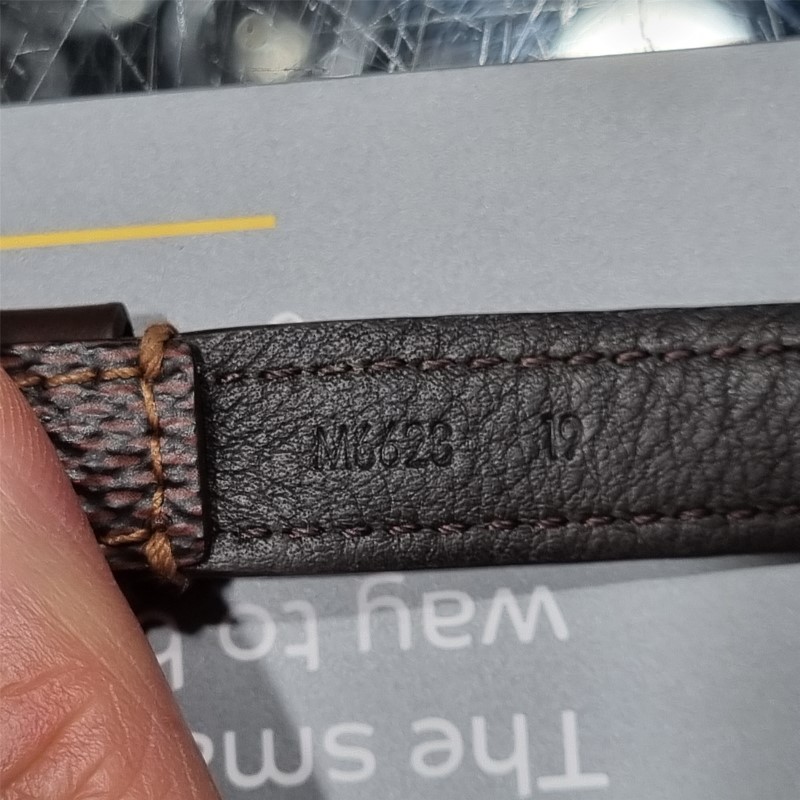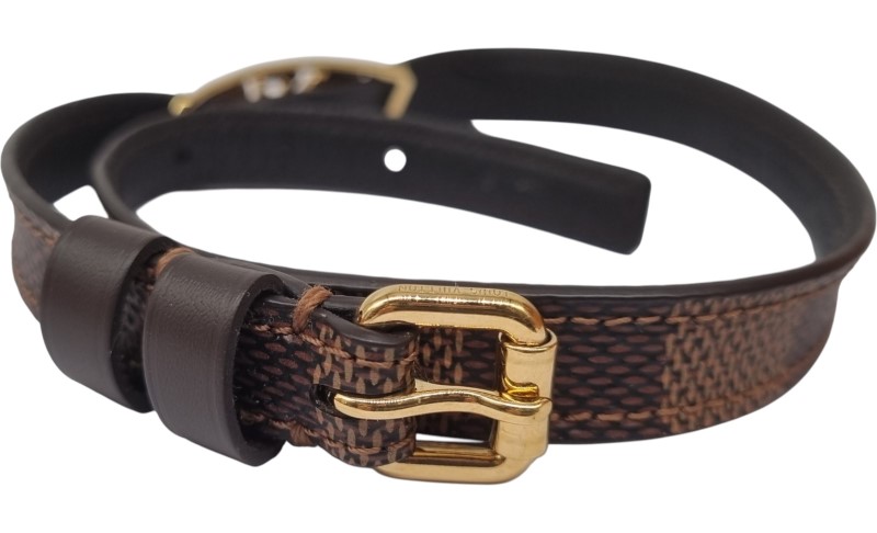 This stylish Louis Vuitton Sign It Damier Ebene Canvas and Leather belt is a versatile fashion accessory. Crafted with the brand's iconic Damier Ebene canvas and accented with supple leather, it offers a timeless and sophisticated look. The belt's adjustable design ensures a comfortable and customised fit. The size: 19 (see photo) and the length is approximately 43.2cm.