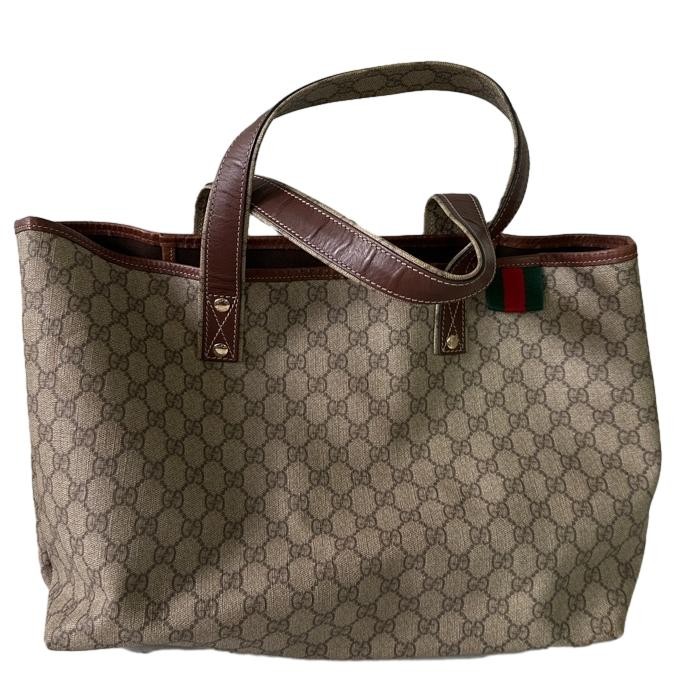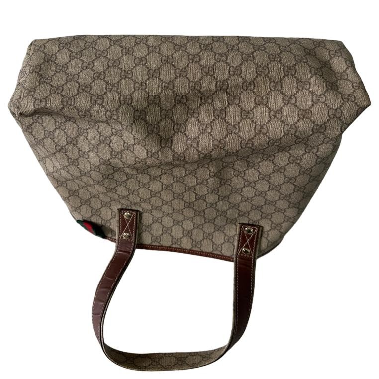 This timeless GUCCI SUPREME SHERRY LINE TOTE BAG is a versatile and stylish accessory perfect for any occasion. Crafted with the brand's signature Supreme canvas and leather trims, this spacious tote features a roomy interior with multiple compartments to keep your essentials organised. The classic Gucci logo adds a touch of luxury, while the sturdy construction ensures long-lasting use.