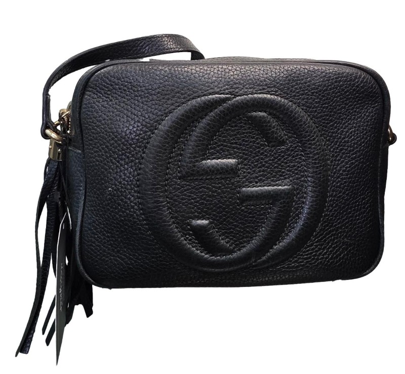 This stylish GUCCI SOHO DISCO handbag is a classic accessory that will complement any outfit. Crafted with the brand's signature quality, this bag features a spacious interior, adjustable shoulder strap, and a sleek, modern design. Despite some wear, it remains in a wearable condition, making it a practical and fashionable choice.