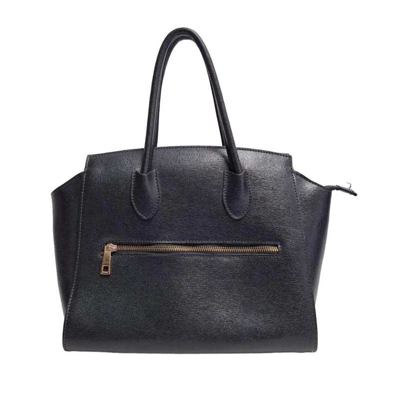 This stylish black leather bag is a versatile accessory that can elevate any outfit. Crafted from high-quality materials, it boasts a sleek and sophisticated design that is perfect for both casual and formal occasions. The structured silhouette and spacious interior make it ideal for everyday use, allowing you to stay organised and on-the-go.