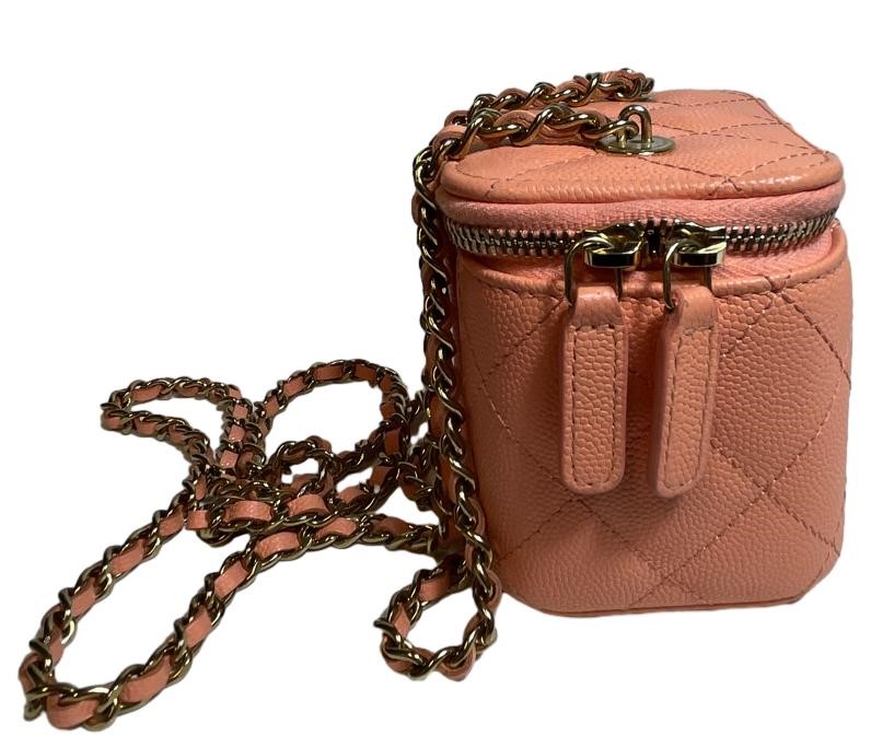 Model Name: Peach Pink Quilted Caviar Mini Vanity