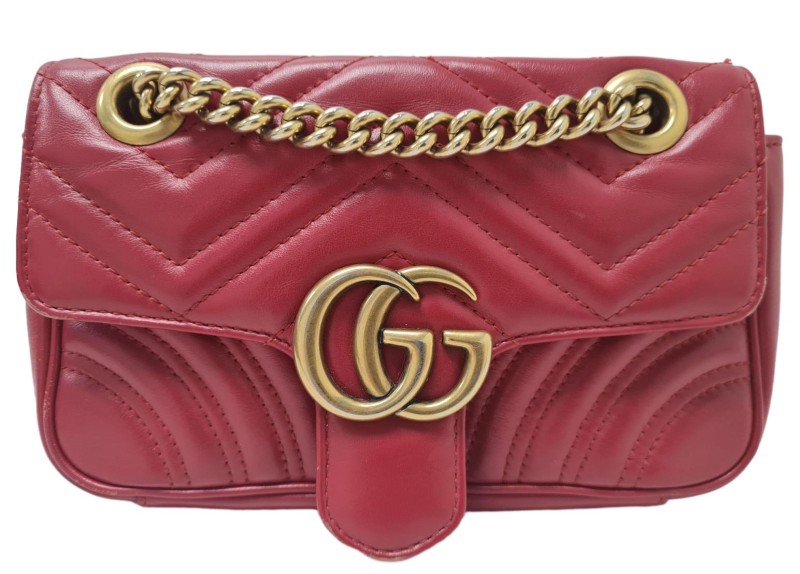GUCCI GG Marmont Flap Red 22cm Mini Crossbody Shoulder Bag