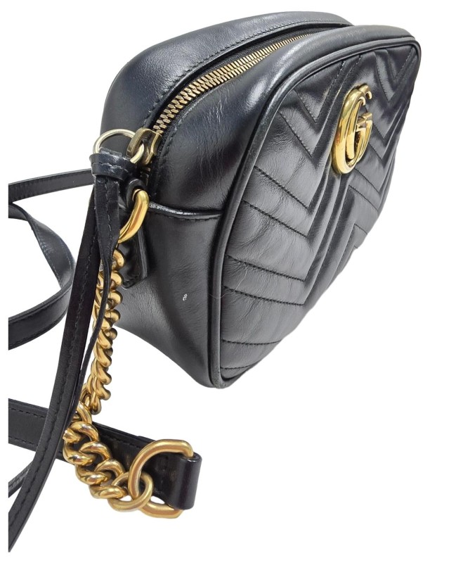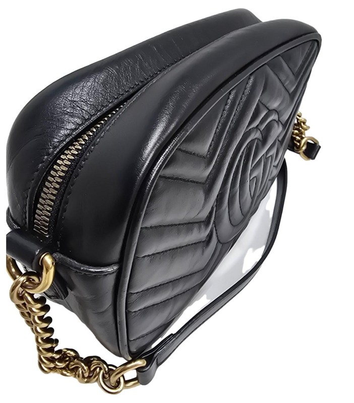 This classic Gucci Marmont Small Camera Bag is a stylish and versatile accessory that can elevate any outfit. Crafted from high-quality materials, this bag features the iconic Gucci logo and a sleek, compact design that's perfect for everyday use. The adjustable strap allows for comfortable, hands-free carrying, while the interior compartments provide ample space for your essentials.