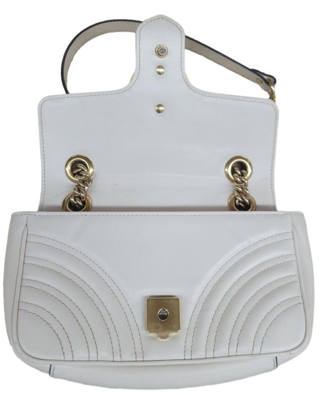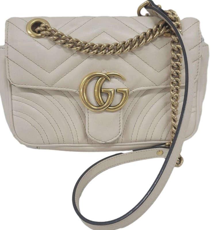 This chic Gucci Marmont Medium handbag is a stylish accessory that effortlessly complements any outfit.
