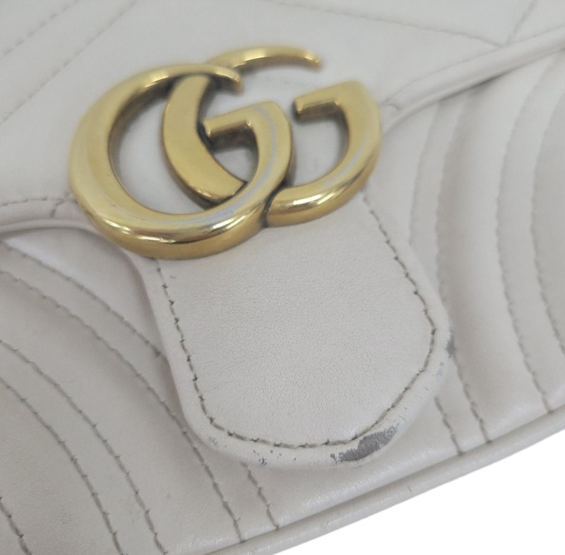 Crafted with the brand's iconic GG monogram, this medium-sized bag features a flap closure, a detachable and adjustable shoulder strap, and an interior compartment for convenient storage.