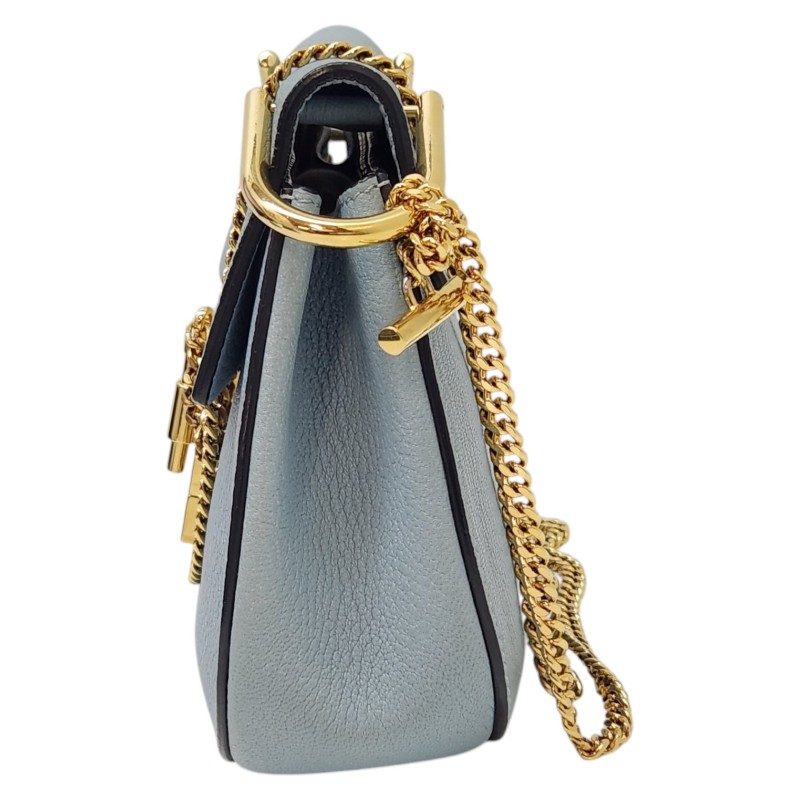 This stylish Chloe Small Drew handbag is a versatile accessory that can elevate any outfit. Crafted with the brand's signature attention to detail, it features a structured silhouette and a chic gold-tone hardware. The compact size makes it perfect for everyday use, while the adjustable strap allows for comfortable, hands-free carrying. This pre-owned bag shows signs of wear but remains in a wearable condition, making it a practical and fashionable choice.