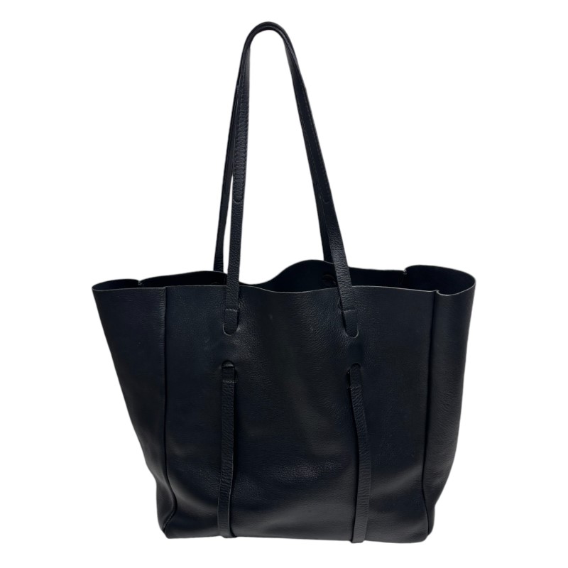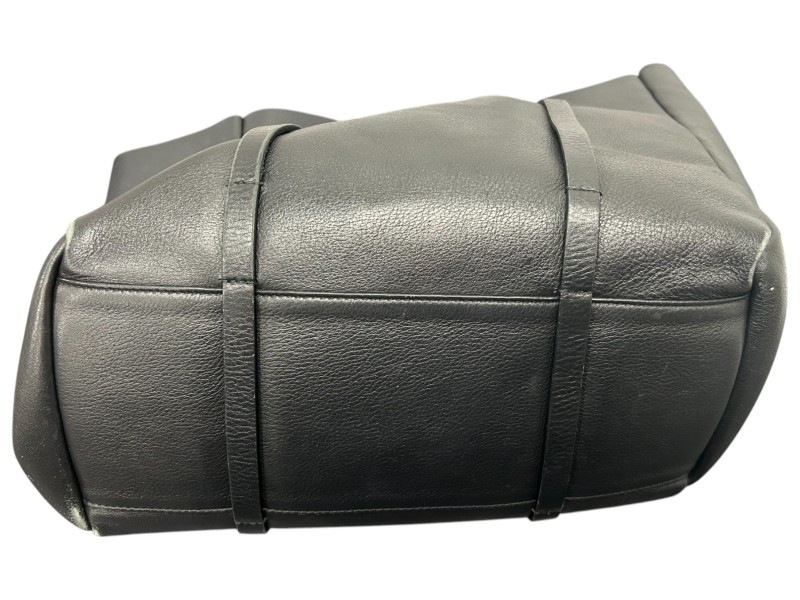Make a statement with the Balenciaga Black Leather Tote Bag. Expertly crafted from supple black leather, this chic and functional bag exudes sophistication and modernity. Its roomy interior and understated design offer versatility, while the refined craftsmanship ensures durability. A must-have accessory for the discerning fashion lover.