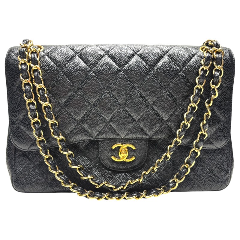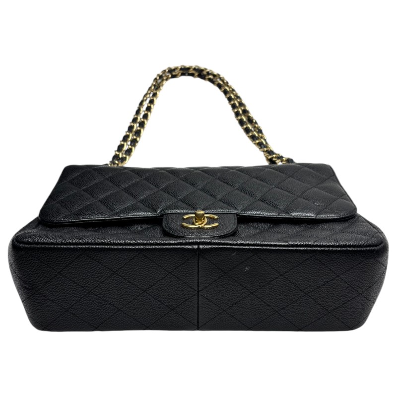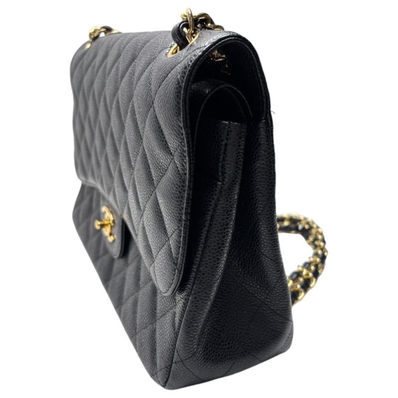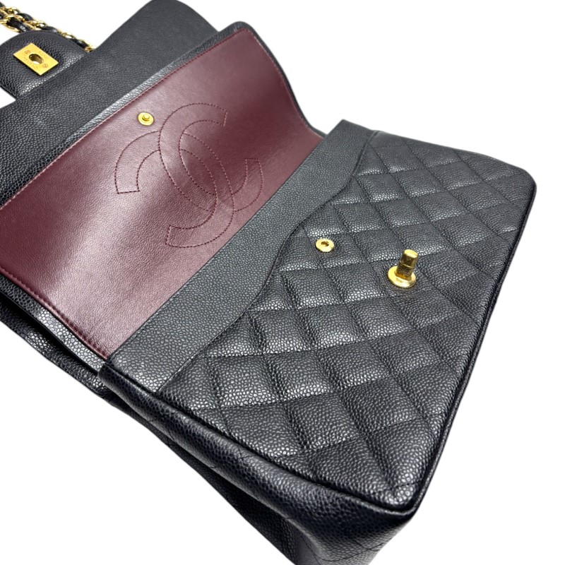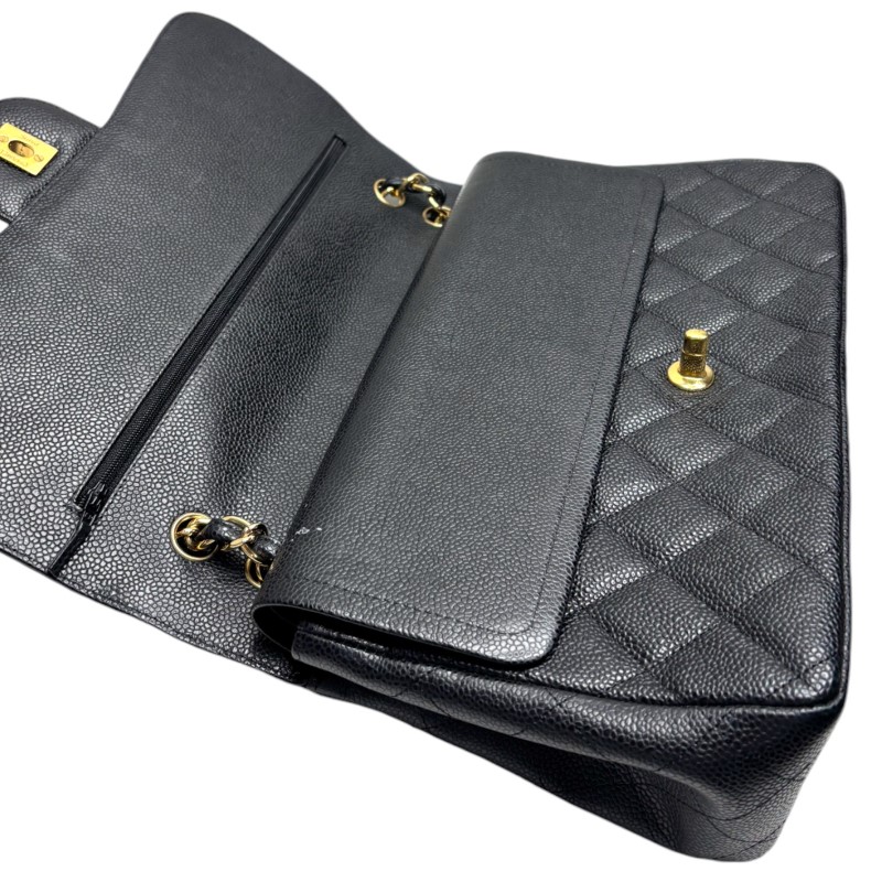 Model Name: Jumbo Double Flap In Black Quilted Caviar Leather